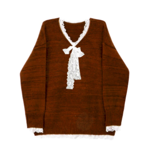 Brown Sweater with Lace Panel Detail